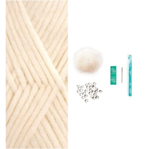 Données techniques pour 1pc Blanc Crème Pompon Chapeau Strass Crochet Tricot Chapeau Cap Kit fait à la Main Pour les Débutan