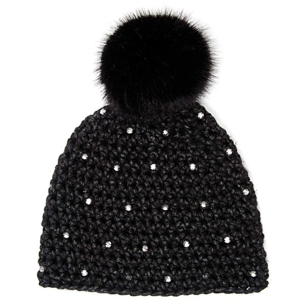 Description de 1pc Blanc Crème Pompon Chapeau Strass Crochet Tricot Chapeau Cap Kit fait à la Main Pour les Débutan