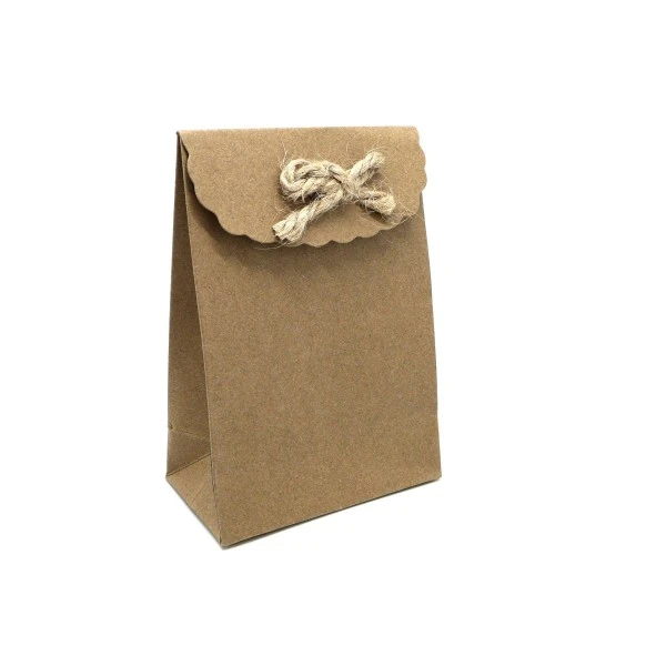 2 boites pochettes Cadeaux uni couleur kraft avec noeud en cordelette 13cm x 9cm