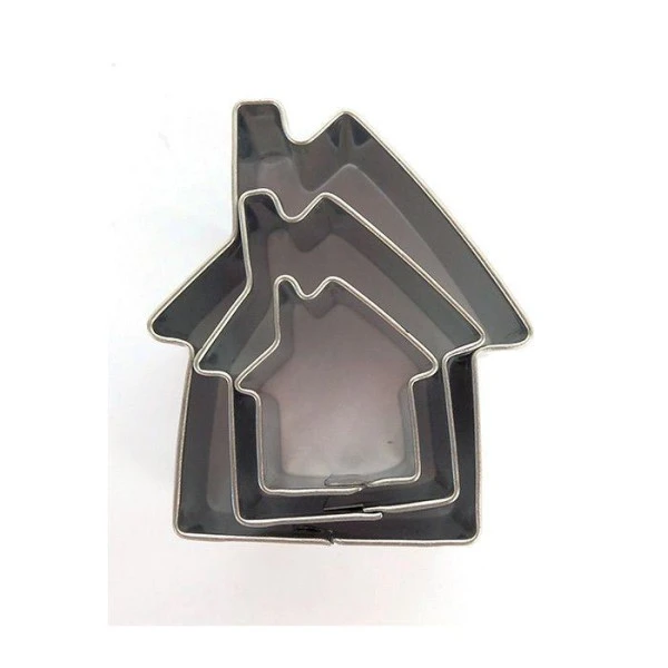 Trio d’emporte-pièces pour pâtisserie ou pâte polymère Ces emporte-pièces en inox représentent une simple maison avec son toit et sa cheminée. Bien sûr, ces emporte-pièces sont de qualité alimentaire, et permettent de découper des biscuits, du pain d’épices à cuire, de la pâte d’amande, mais aussi la pâte polymère. Dimensions des maisonspetit 2 x 2 cm, moyen 3 x 3 cm, grand 4 x 4 cm.