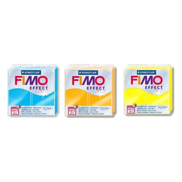 Pâte polymère fluorescente. Avec ces petits pains de pâte polymère, soyez créatif et réalisez des bijoux, des porte-clés, des figurines, ou autres objets de décoration. La pâte effet néon est fluorescente et brille sous la lumière bleue ! Pour un objet solide, faites le cuire au four à 110°C pendant 30 minutes. Vendue sous forme de pains de 57 g, pré-découpées en 7 portions égales. Sachets refermable. Couleursbleu, orange, jaune.