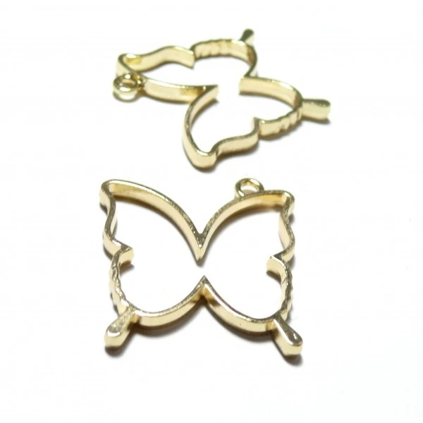 4 breloques pendentifs Papillon Doré pour création de Resine ou Fimo HS4734E Dimensions: 35mm par 32mm par 3.5mm Trou: 3mm. Beaucoup d’autres modèles de breloques pour créations en résine sont disponibles dans notre boutique Apprets sans nickel, sans plomb