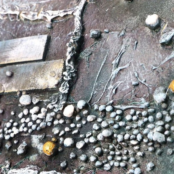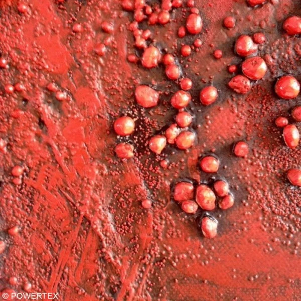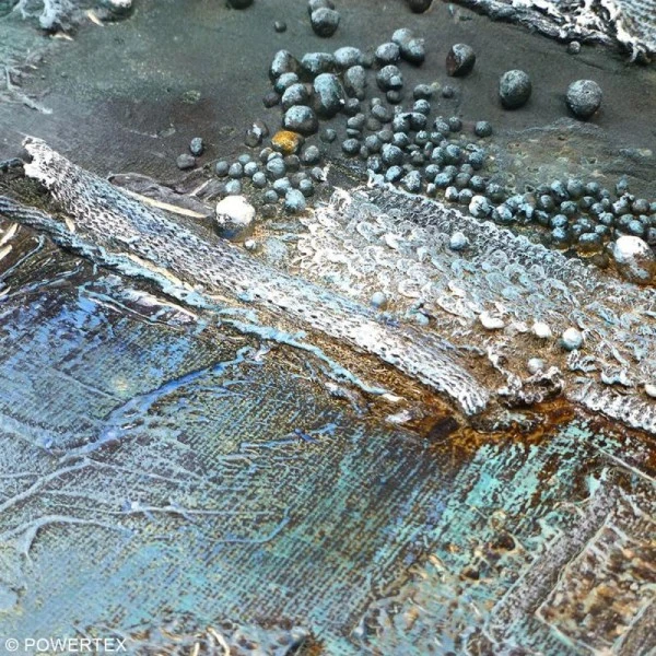 Les billes 3D de Powertex sont confectionnées dans un matériau poreux, ainsi ils pourront parfaitement se mélanger avec les médiums Powertex et conviendront au mélange de techniques telles que le Mixed Media.