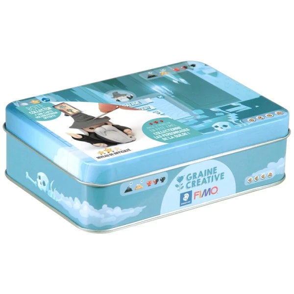 Voici une superbe boîte métal Fimo fantastique qui plaira à tous les amateurs de fantasy et de modelage ! Ce kit de modelage contient tout le matériel nécessaire pour vous permettre de modeler une figurine Mage de glace ! Vous trouverez dans cette jolie boîte en métal collector, 3 pains de pâte polymère à modeler et à cuire, des transferts pour personnaliser votre création comme vous le souhaitez , un pas-à-pas illustré mais aussi une carte collector Mage de glace holographique !