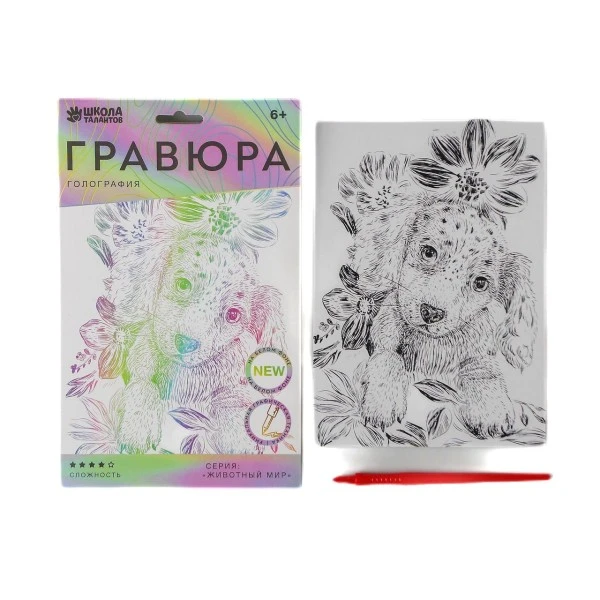 Données techniques pour Chiot Beagle Chien Scratch Art Kit de BRICOLAGE, Argent Métallisé Effet Holographique, Gravure Trous