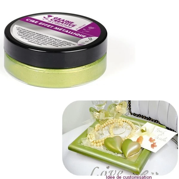 Description de Cire effet métallique Vert Anis, 62.5gr, Patine pour Carton, Bois, Argile, Polystyrène