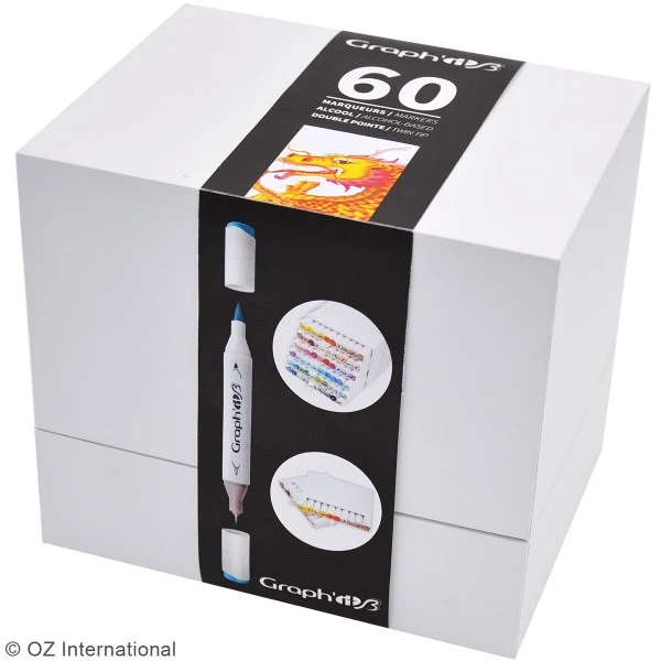 Description de Coffret Graph’it brush & extra fine – Marqueurs à alcool double pointe – 60 feutres