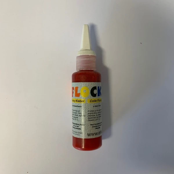Colle Flocky 50 ml à base d’eau, s’utilise sur du carton, du polystyrène, du bois, du plastique, du métal et également sur textile