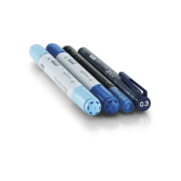 assortis dans les couleurs1 x B12, B24 + 1 MULTILINER 0,3 mm bleu + 1 stylo à paillettes bleu