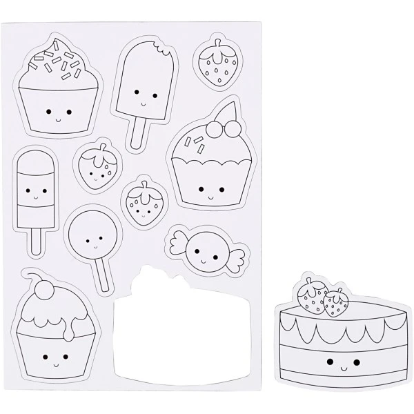 Magnets prédécoupées avec différents designs à décorer avec des feutres, des crayons de couleurs, des paillettes, etc.