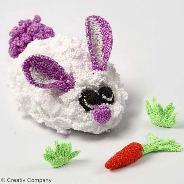 La pâte Foam Clay (classique ou néon) est une pâte à modeler qui sèche à l’air libre et conserve sa légèreté. Elle adhère sur tous les supports ce qui pourra vous permettre de décorer des formes en polystyrène par exemple.