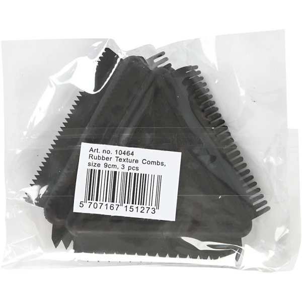 Peigne triangulaire en caoutchouc avec 3 formes de dents différentes. Pour créer des effets dans la peinture, le sable, la pâte à structure etc.