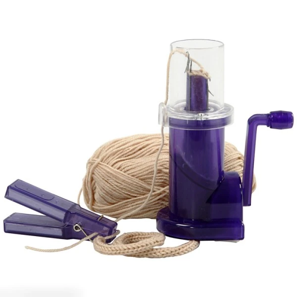 Moulin à tricoter semi-automatique, pratique avec manivelle pour la fabrication facile de tricotin (tubes tricotés). Nous recommandons un fil fin pour crochet (de 2,5 à 3,5).
