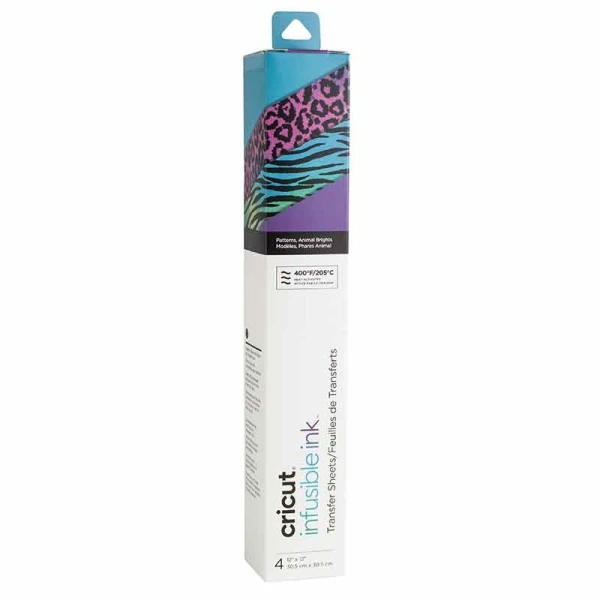 Ces feuilles de thermocollant Infusible Ink vous permettront de customiser vos supports personnalisables compatibles (vendus séparément). Pour cela, il vous suffira de les couper à l’aide de votre machine de découpe. Vous n’aurez plus qu’à poser votre découpe sur le textile souhaité et d’utiliser une presse Cricut EasyPress ou une presse à chaud qui atteint 205 °C (400 °F). La technique de transfert Infusible Ink (encre thermofusible) incruste directement le motif dans le tissu. Le résultat est une création nette, sans bavure et qui résiste aux nombreux lavages ainsi qu’à l’usure. Les encres transférées ne s’écaillent, ne se décollent, ne se craquellent et ne se froissent jamais. Ces feuilles produiront des transferts de chaleur éblouissants, vivants, professionnels et permanents. Offrez une longue vie à vos créations ! Couleurmotifs animaux flashy. Dimensions30,5 x 30,5 cm. Référence Cricut2006765.