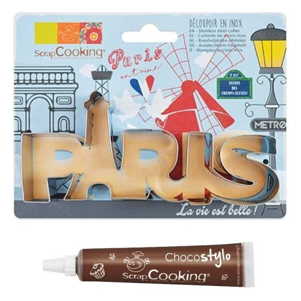 Description de Découpoir à biscuits en inox Paris + Stylo chocolat