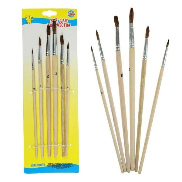 Description de Ensemble de pinceaux, aquarelle, Artiste, Brosse À Cheveux naturelle » pony « Ronde, 6 pièces: No. 2,