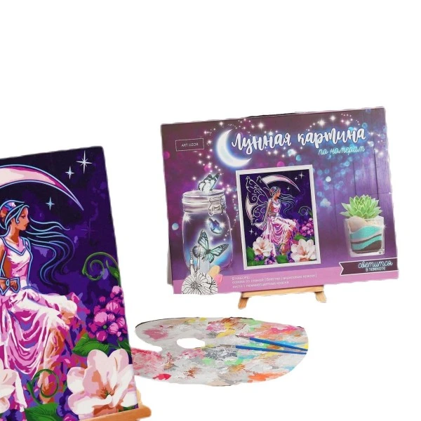 Description de Fée de la Lune de la Peinture Par numéro Kit de Bricolage, Lueur Dans l’Obscurité Ensemble, Paillett