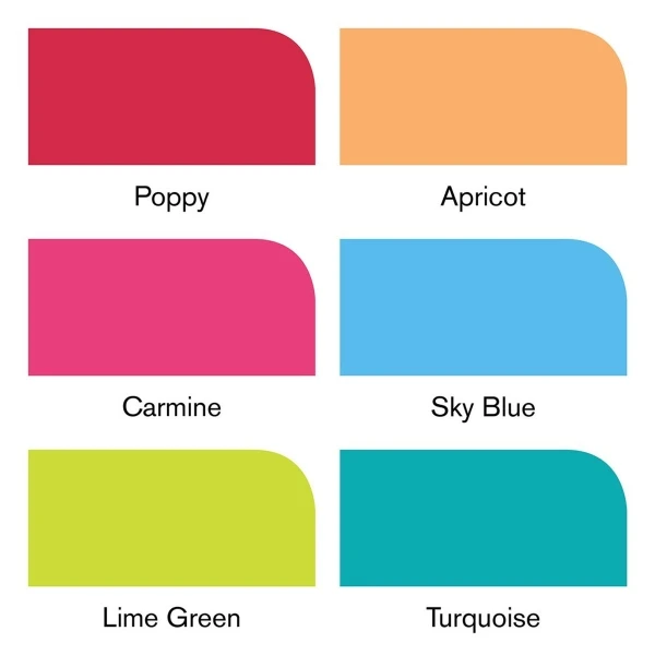 - Couleurs Tons moyensTurquoise C247, Vert lime G178, Bleu ciel B137, Carmin R156, Abricot O538, Pavot R565