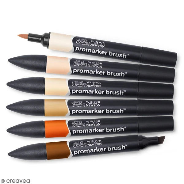Description de Feutres à alcool PromarkerBrush – Tons de peau – 6 pcs