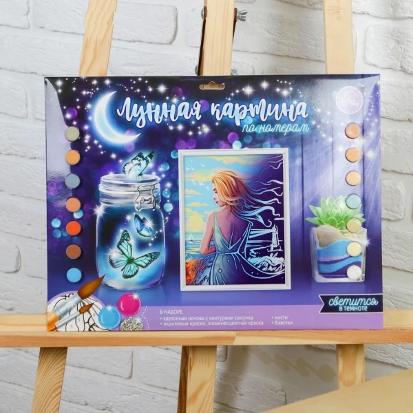 Description de Fille de l’Océan de la Mer de Lune Peinture Par numéro Kit de Bricolage, Lueur Dans l’Obscurité Ense