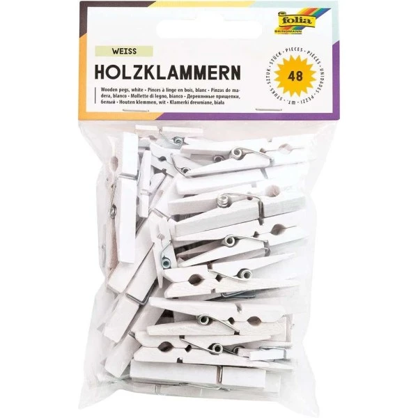 FOLIA – Pince à linge en bois, 3 tailles – Blanc