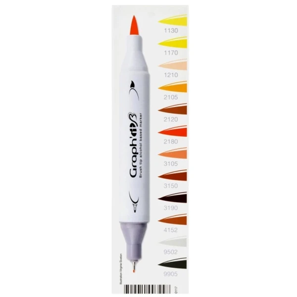 Le marqueur Graph’it est un marqueur à alcool composé d’une double pointe pour s’adapter au mieux à vos besoins de créations ! D’un côté, une pointe japonaise pinceau en fibres synthétiques, généreuse en ancrage pour les tracés plus ou moins épais ! De l’autre côté, vous pourrez tracer avec précision les contours et détails grâce à une pointe de 0,5 mm idéale pour tous les tracés fins !