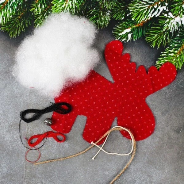 Description de Kit De Bricolage Cerf Rouge W Cloches, Noël, Coton, Décor À La Maison, Ornement En Tissu D’Arbre De