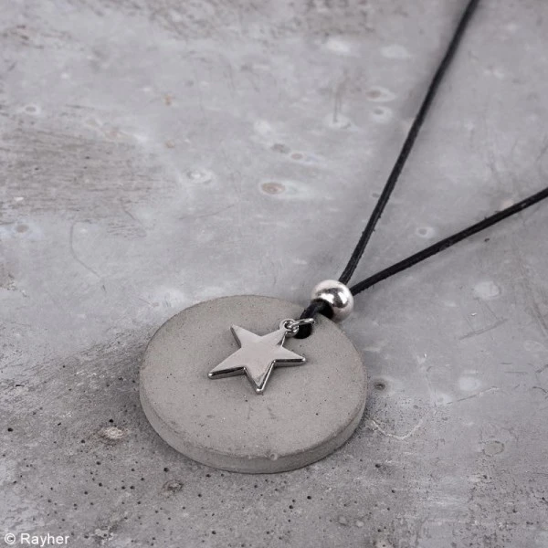 Description de Kit de réalisation de bijoux en béton créatif, 50g de béton, 1 moule, lanière cuir et breloque étoil