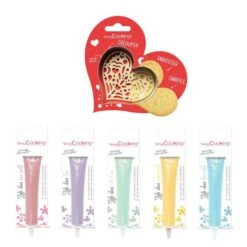 Description de Kit pour biscuits en relief Coeur + 5 stylos choco pastel