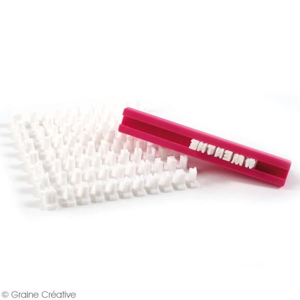 C’est désormais possible avec le kit tampon alphabet Graine créative ! Ce kit contient 1 réglette en plastique ainsi que des tampons alphabet, chiffres et symboles à glisser dedans pour former les mots que vous souhaitez.