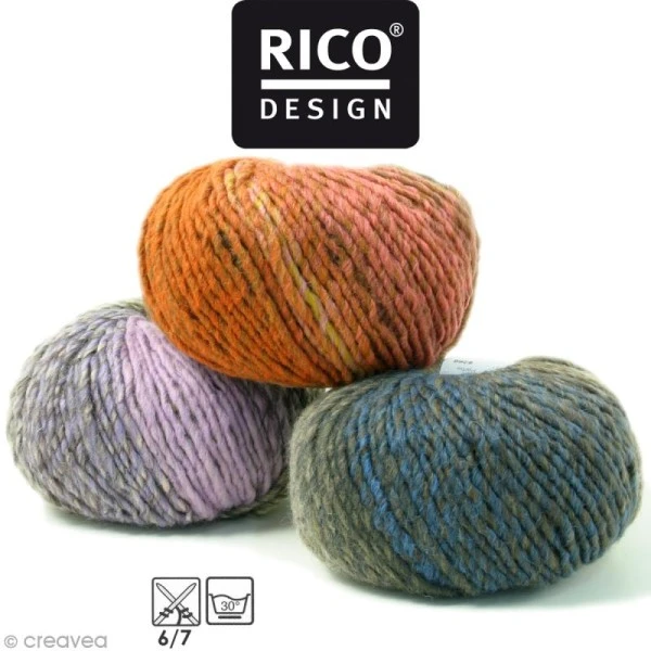Données techniques pour Laine Rico Design – Creative melange chunky – 50 gr – 53% laine vierge 47% acrylique