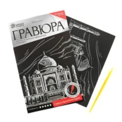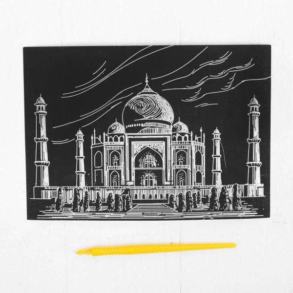 Description de Le Taj Mahal en Inde Voyage Scratch Art Kit de BRICOLAGE, Argent Métallisé Effet, la Gravure Trousse