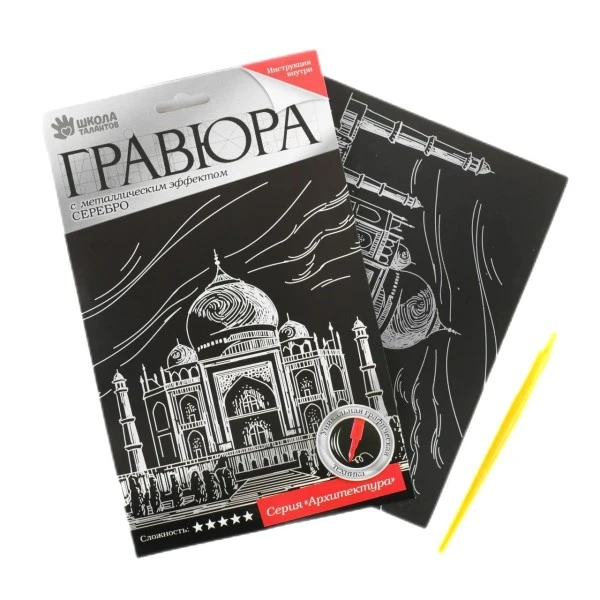 Données techniques pour Le Taj Mahal en Inde Voyage Scratch Art Kit de BRICOLAGE, Argent Métallisé Effet, la Gravure Trousse