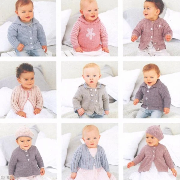 Livre de tricot pour faire des vêtements et accessoires pour bébés jusqu’à 24 mois, avec les fils layette Rico baby classic dk de Rico Design.