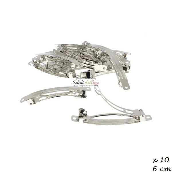 Lot de 10 Barrettes pour cheveux, 6 cm de long, argentées, à customiser