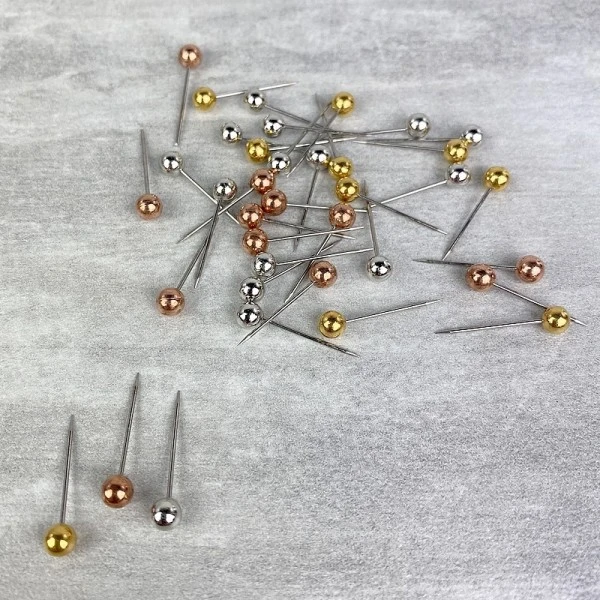 Description de Lot de 200 petites épingles perles argenté doré cuivré, longueur 1,6 cm, aiguilles têtes 4 mm