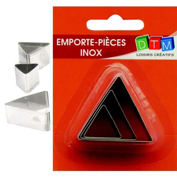Description de Lot de 3 minis emporte-pièces Triangle, 2 cm, 3 cm, 4 cm, Inox alimentaire, fimo et cernit