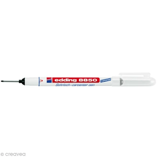 Feutre marqueur charpentier à pointe longue et fine, pour marquer les zones difficiles d’accès dont le diamètre est faible. Le marqueur charpentier Edding 8850 est multi-supportsmétal, pierre, verre, bois et plastique. Très facile à utiliser, ce feutre spécial vous servira par exemple à marquer les tous d’alésage lorsque vous fixez une étagère. L’encre est à séchage rapide, résistante à l’eau et à l’effacement à sec.