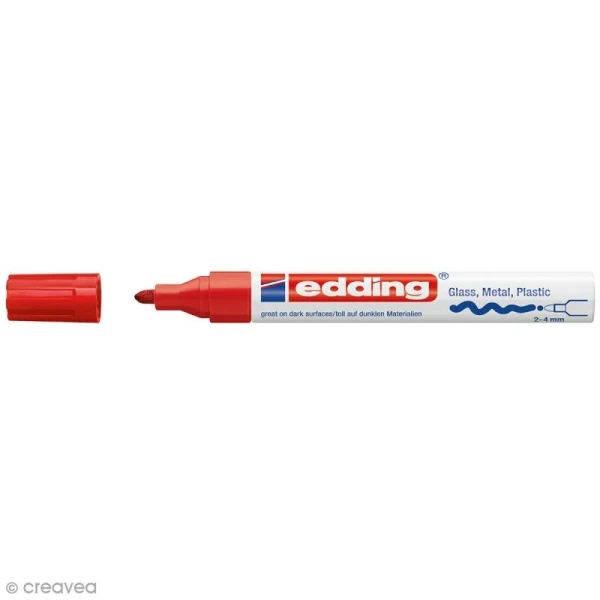 Ce marqueur peinture Edding 750 Rouge est un feutre tout support, idéal pour appliquer de l’encre laquée parfaitement couvrante sur du verre, métal, plastique et sur toutes sortes de surfaces foncées. Rien n’arrête le feutre peinture Edding Edding 750 ! Comme par enchantement, vous métamorphoserez vos supports. Avec ce marqueur peinture Edding 750, vous transformerez en quelques secondes les choses ordinaires en cadeaux et décorations exclusives.