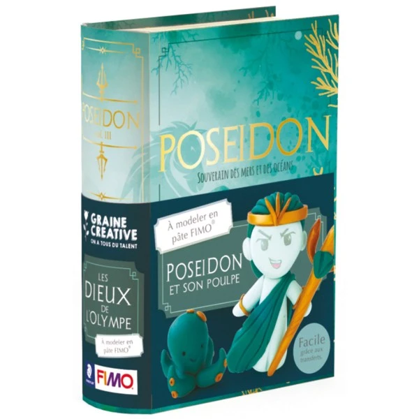 Ce Mini Kit Fimo sur le thème des Dieux de l’Olympe ravira petits et grands. En effet grâce à ce kit modelage Fimo, vous pourrez modeler un dieu grec, ici Poséidon, tout en découvrant son histoire. Une façon originale de s’instruire tout en s’amusant !