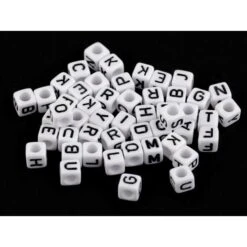 1bag Ix Noir-blanc Perles De Plastique Cube 6mm Avec Des Lettres, D’Autres