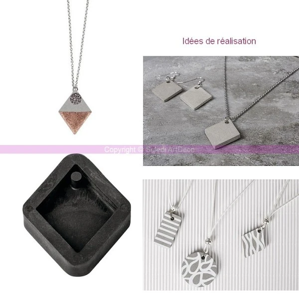 Moule Pendentif en caoutchouc flexible pour béton ou résine, Forme Losange 2,9 x 3,9cm