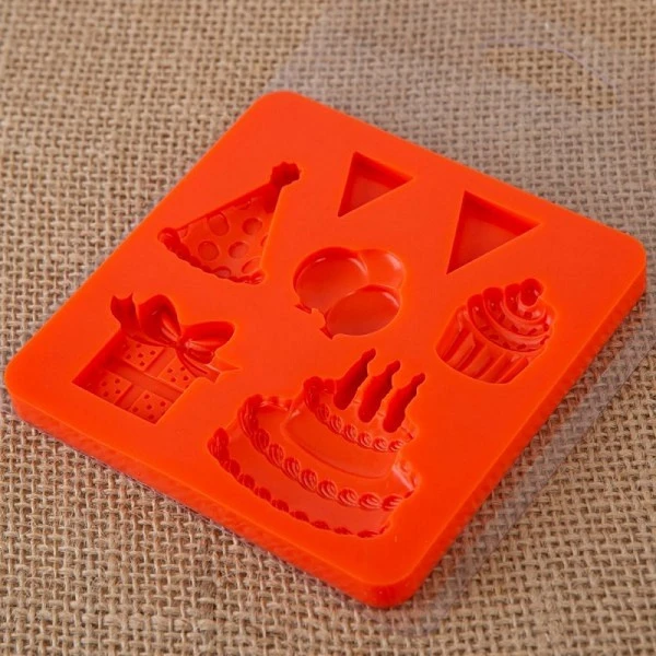 Description de Moule Mod Mold Célébration, 7 designs, Planche 95 x 95 mm en silicone extra flexible anniversaire