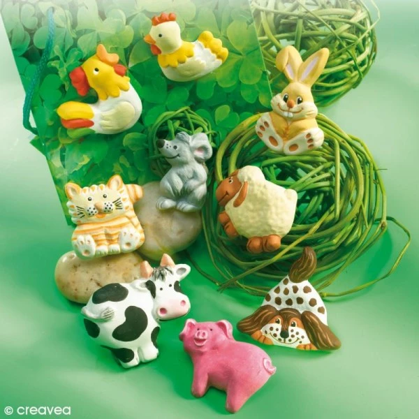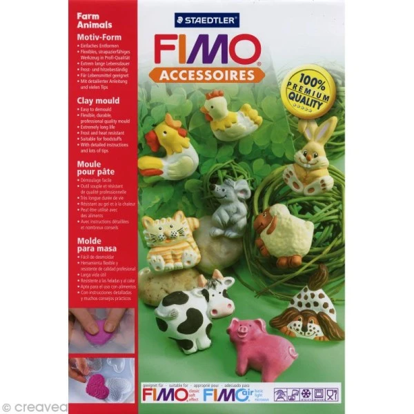 Ces moules Animaux de la ferme pour moulage en pâte FIMO sont parfaits pour reproduire plusieurs fois la même forme, ou tout simplement s’initier à l’art du moulage et du modelage en pâte polymère comme la Sculpey ou la Fimo. Le plastique de ce moule est de qualité professionnelle, ce qui vous assure une longue durée et un démoulage facile. Ces 9 petits animaux sont prêts à décorer vos cartes, vos pages de scrapbooking ou vitrines miniatures !