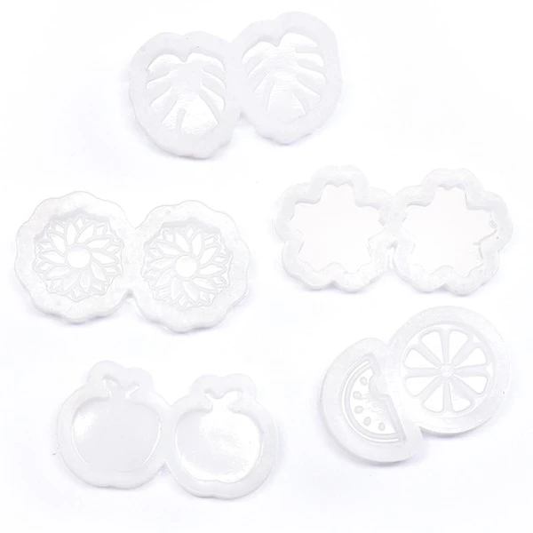 Fabriquez vos propres bijoux et petites décorations en résine, pâte Fimo ou plâtre avec les Moules silicone pour bijoux Feuille. Découvrez les 5 paires de motifs en forme de feuilles, de fleurs et de fruits.