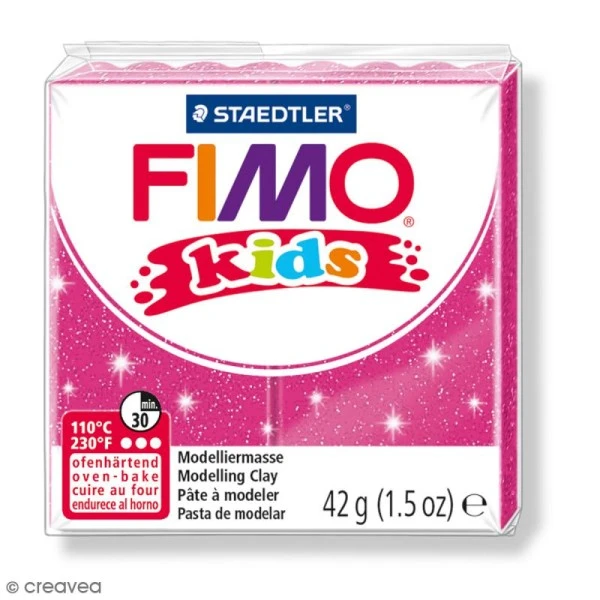 – Pâte Fimo Kids Rose pailleté certifiée CE