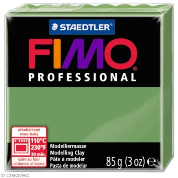 Le pain de Fimo Professional Vert feuille se présente en paquet de 85 gr.