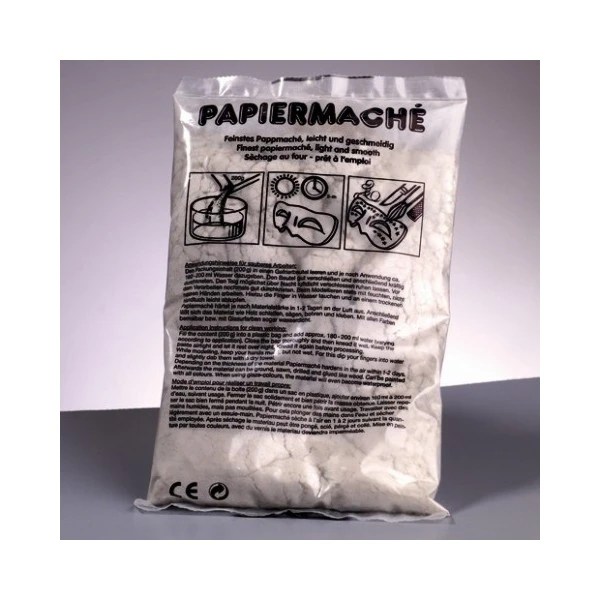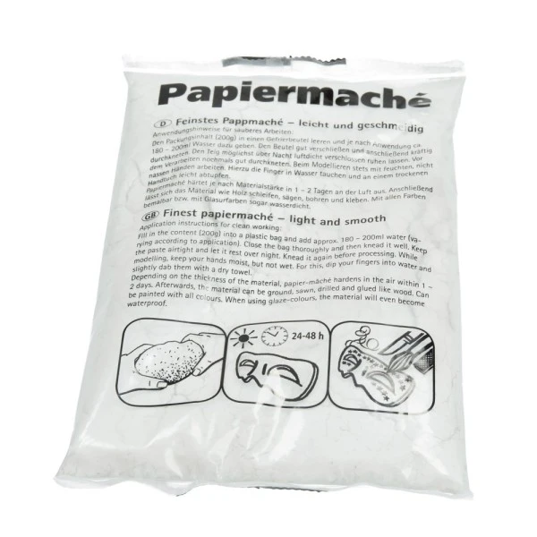 Description de Pâte pour papier mâché, 200 g, matière 1ère naturelle, à diluer dans l’eau