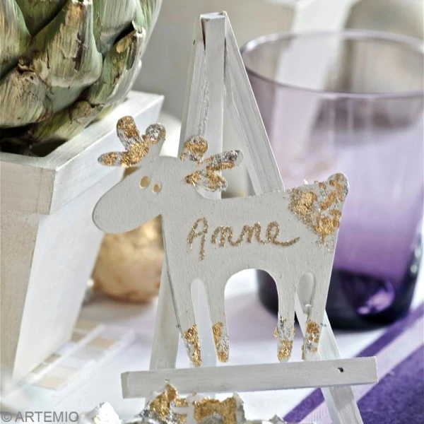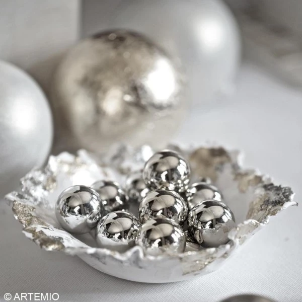Les copeaux à dorer argent seront parfaits pour vos décorations de fête par exemple en recouvrant un bougeoir en bois ou une boîte à thé que vous offrirez !