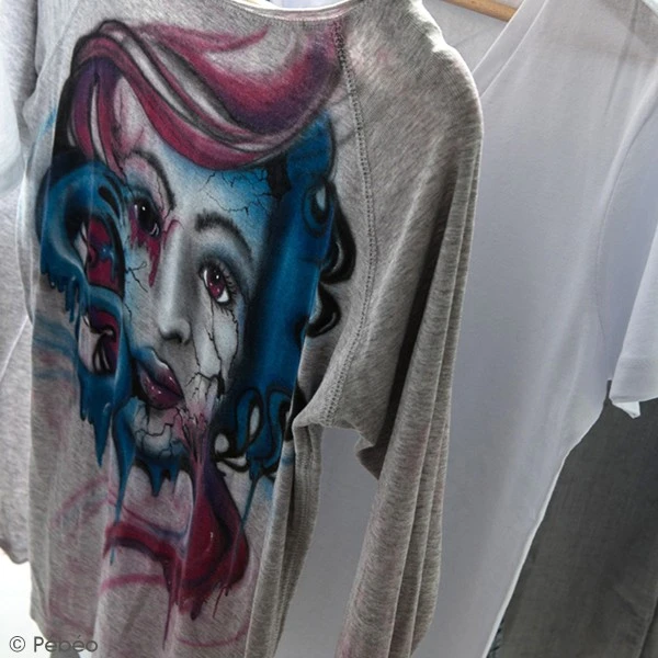 - Une fois la peinture en spray appliquée, comptez 15 minutes de séchage et repassez sur l’envers du textile sans vapeur, afin de fixer la couleur et la peinture, de manière permanente.